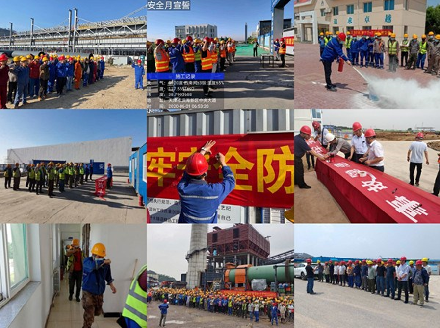 6月16日,天津濱海新區垃圾焚燒發電廠二期工程項目舉行安全月啟動儀式并組織工地消防和應急疏散演習。本次活動及消防演練的實施共分為:火災逃生模擬、安全月啟動宣傳、安全施工宣誓、消防演練、業主安全部門領導進行安全教育、全體參與人員在安全月主題條幅上簽名、演練現場清理恢復、對本次消防演練進行評估等階段。通過本次活動,及時向項目人員傳達了現場安全管理要求,明確了各級崗位和人員的安全責任,提高了項目人員滅火、疏散、自救能力和管理者火場組織協調、指揮能力,宣傳了滅火器等消防器材的使用方法。