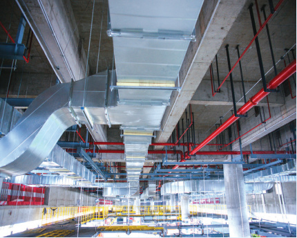 近日,四川省工業設備安裝集團有限公司承接的成都天府國際機場航站區綜合安裝施工一標段工程正在緊張施工,該標段工程包括T1航站樓、1#和2#行李管廊、捷運系 統(APM)、現場服務大樓、運行指揮大樓、1#和2#綜合管廊、GTC換乘中心、T1和T2停車樓、PRT交通工程、接橋道路、下穿隧道等工程的給排水、強電、暖通、弱電施工。四川省工業設備安裝集團有限公司作為安裝總協調單位,負責統籌機電安裝專業的管線綜合和協調工作。