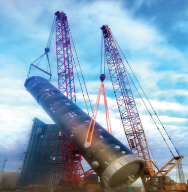 近日,浙江省工業(yè)設(shè)備安裝集團有限公司二分和空分工程分公司 217項目部承建的中石油廣東石化3×70000Nm3/h空分安裝項目1#冷箱下塔順利吊裝就位。下塔高30.7m,直徑4.74m,重109t,該塔的吊裝 是中石油廣東石化煉化一體化項目首件百噸級以上設(shè)備吊裝,也是空分裝置建設(shè)過程中的重要里程碑,標志著空分裝置由土建施工階段正式轉(zhuǎn)入安裝階段。