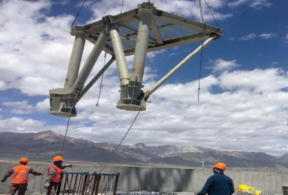 近日,浙江省工業設備安裝集團有限公司二分和空分工程分公司承建的青海德令哈中控太陽能50MW光熱發電項目吸熱塔第一榀鋼結構安裝就位,標志著該項目吸熱塔鋼結構首吊成功,吸熱塔系統鋼結構正式從預制階段進入安裝階段。該項目位于青海省海西州德令哈市,是國家首批光熱發電示范項目之一,采用塔式熔鹽技術,裝機容量50MW,配置7h儲熱系統,年發電量1.46億kWh。