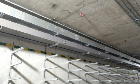 杭州市沿江大道(觀潮路-和睦港)地下綜合管廊工程西起觀潮路,東至和睦港,全長3.65km,估算投資約為7.4億元,收容給水、燃氣、電力、通信共四類管線并預留部分管位。中天建設集團浙江安裝工程有限公司負責完成管廊內及附屬用房的機電安裝內容。目前,該項目主體建設已經完成95%,機電安裝部分已經完成50%,預計在十一月底竣工。圖為現場安裝局部成品圖。