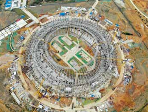 成都大運會開閉幕式主場館東安湖體育公園體育場鋼結構主體封頂