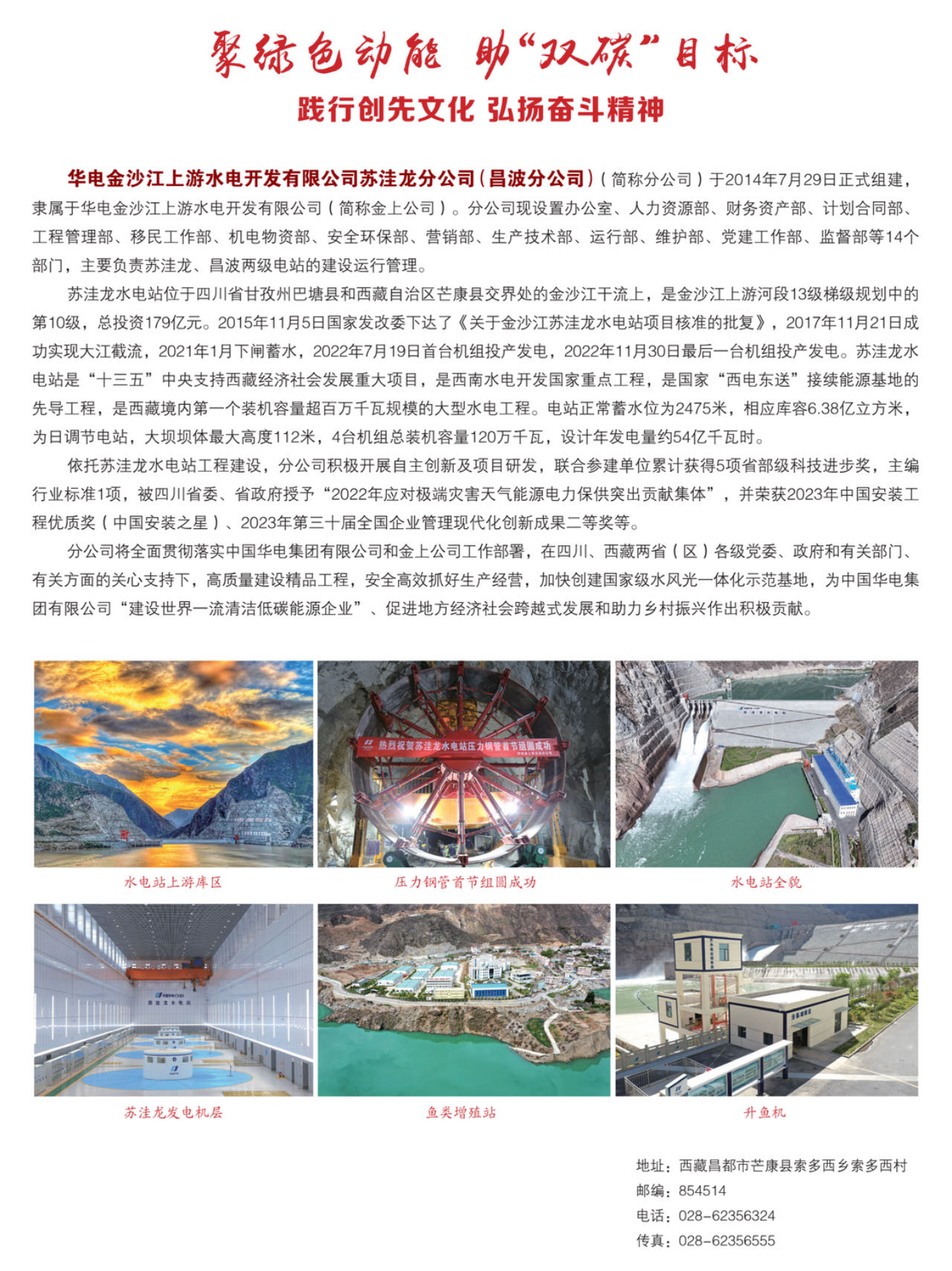 華電金沙江上游水電開(kāi)發(fā)有限公司蘇洼龍分公司(昌波分公司)