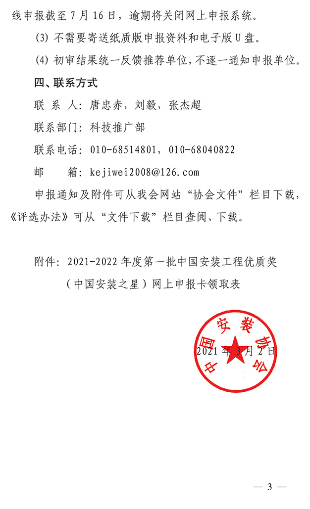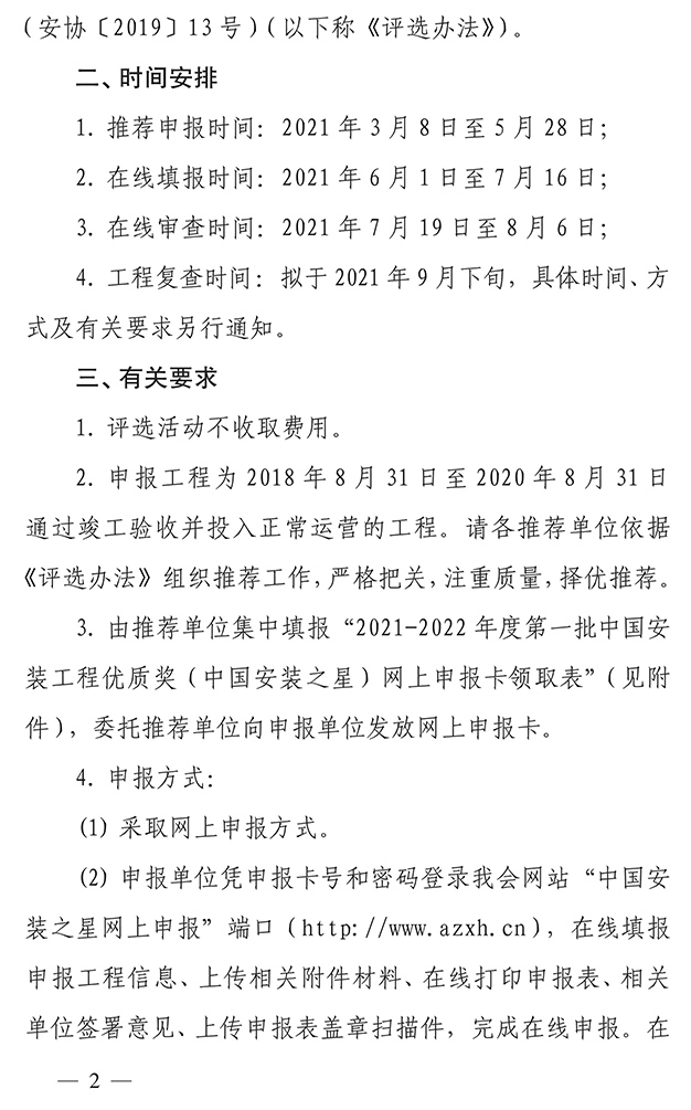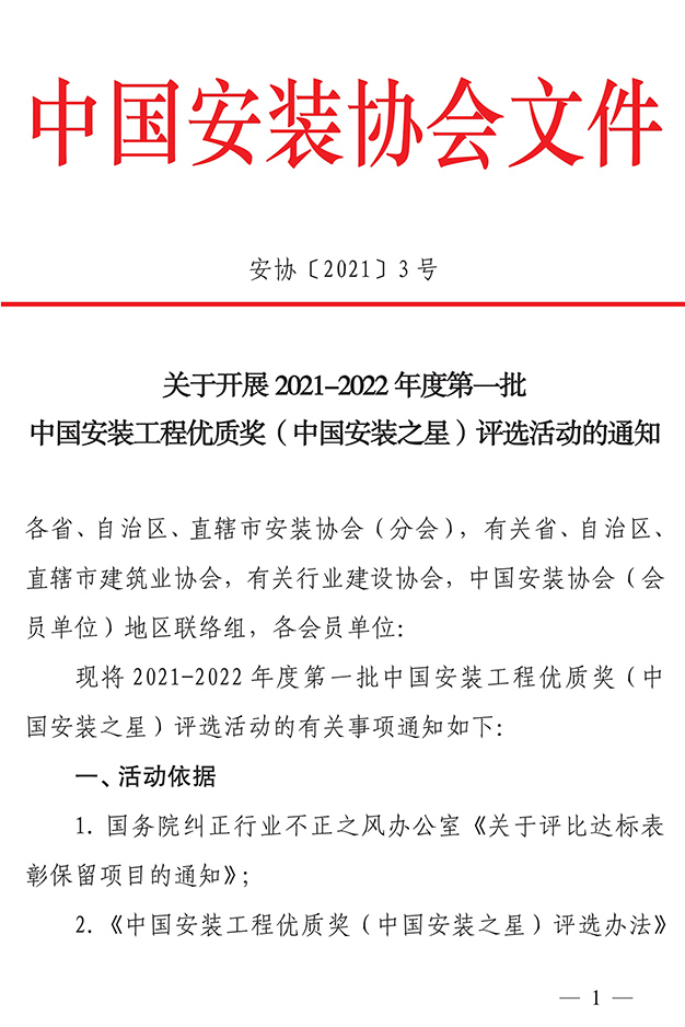 關于開展2021-2022年度第一批中國安裝工程優質獎(中國安裝之星)評選活動的通知